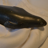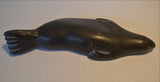 This sculpture is a wonderful depiction of a swimming seal. You can see the fluid movement and curves in the body. Primitive face but more detailed flippers. Beautiful black Arctic stone. Condition consistent with age. Est. 1970.