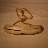 Hand carved from caribou antler. Snow goggles prevented snow blindness in arctic winter.