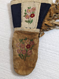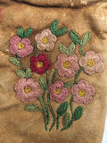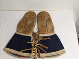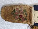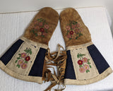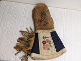 Moose or deer hide. Intricate flower embroidery. Est. 1970's. Women's or child's size. Flannel lined.